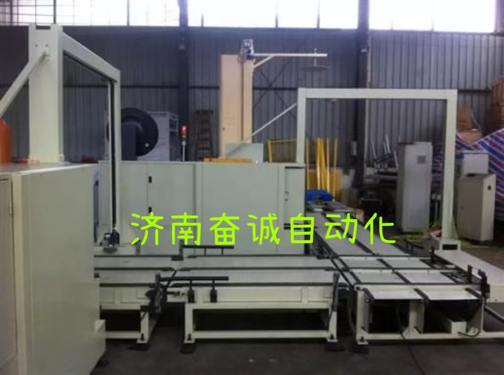 产品详情 包装清单 1、随身工具一套。 2、设备说明书1本。 3、变频器说明书1本。 侧面全自动打包机,框架式全自动打包机产品性能及特点 1.整机采用PLC可编程控制器及人机界面显示屏控制系统,实现机、电、气一体化,具有自动/手动可选功能,自动化程度高,操作方便。 2.主要捆扎机芯或整个机台可前后移动,采用对接式穿箭带道,更可靠的实现在线打包动作。 3.捆包产品在框架里面实现打包动作,框架可根据客户的实际生产需求定做非标框架,另外加送带电机,使设备更顺畅的送带到位。 4.打包带的松紧度随时可调节,方便操作。 5.设备装有故障报警灯,生产当中出现故障,自动报警停机。 6.设备加热装置、切带装置、进退带装置等易损部分均采用优质高硬度合金材料制作,延长了使用寿命。 侧面全自动打包机,框架式全自动打包机 主要规格及技术参数